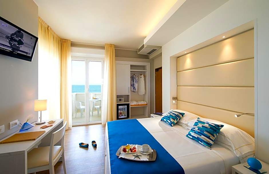 Simple but well appointed for children, right on the pedestrian road in front of the beach, close to restaurants and a gelateria is next door. The bikes with kids seats are great for exploring. Our kids also loved the pool and kids club. Breakfast was good with relaxing outdoor seating option. Reception staff were exceptionally helpful.