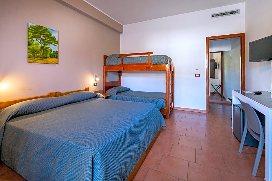 La Terra Dei Sogni Country Hotel offers various room types, including Double or Twin, Family Room Plus with Terrace, Triple, Single, and Quadruple rooms. Smoking is not allowed in any of the rooms. Accommodations range from single occupancy to rooms that can accommodate up to 5 adults and 4 children. Bed sizes vary from Twin beds to Queen size beds.