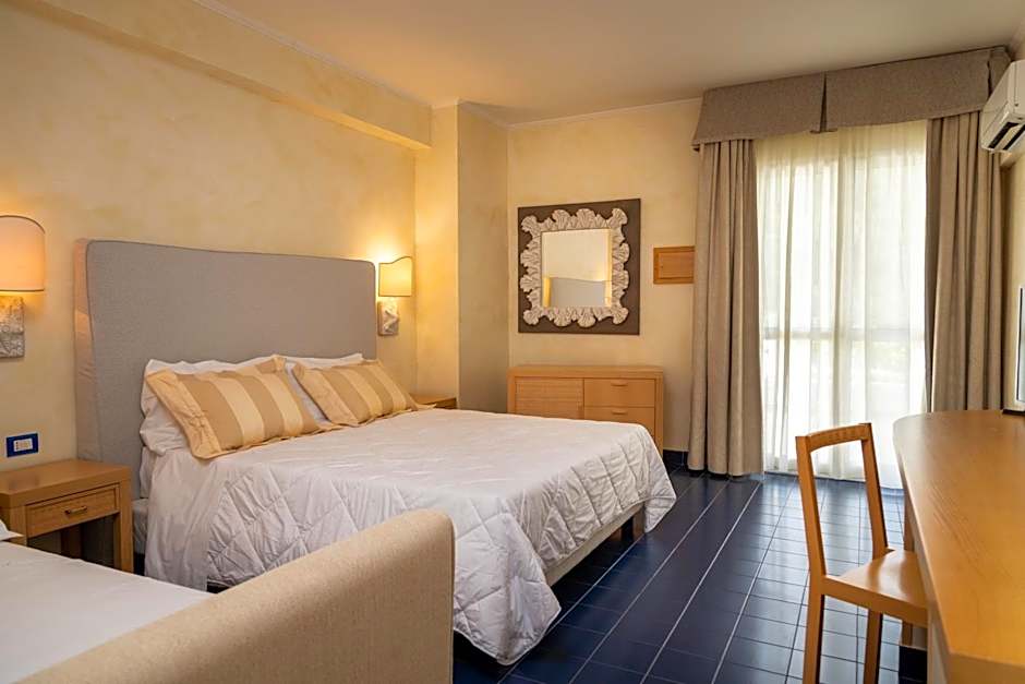 The Hotel Baia Dei Faraglioni offers a range of stylish rooms including standard rooms and suites. Occupancy varies, with some rooms accommodating up to four guests. Well-appointed rooms come with options for both smoking and non-smoking preferences. Bed sizes include various configurations such as twin, double, and queen, with rooms featuring beautiful views of the surrounding area.
