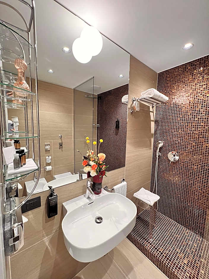 Location was excelent, along one of the popular avenue of city. Metro station os just in front of the hotel, central station is within the walking distance (6-7 minutes). Staff was helpful and friendly. Rooms were clean and staff refilling the bar everyday. Breakfast was quite satisfactory, variety of choices.