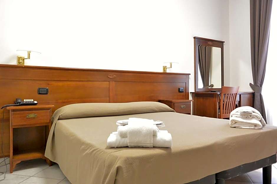 Hotel Trentina offers single, double, and triple occupancy rooms, furnished with either a single, double, or queen-sized bed. Smoking is not allowed in any of the rooms. The rooms come in various sizes, providing comfortable accommodation for different group sizes.