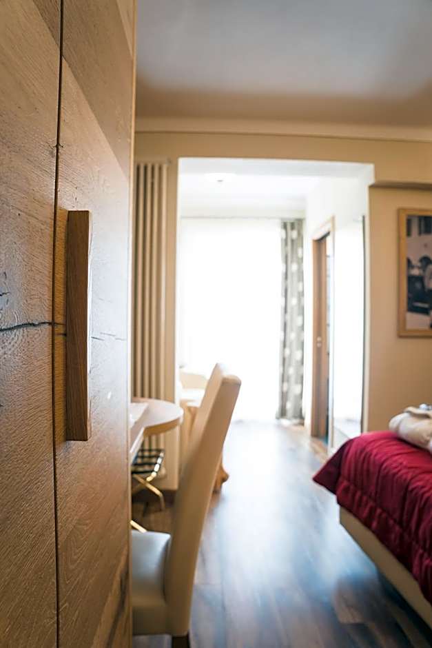Hotel Alle Alpi offers a variety of room types including singles, doubles, and suites with en suite bathrooms. Occupancy ranges from single occupancy in single rooms to four-person occupancy in suites. Smoking is not allowed in any of the rooms. Bed sizes vary from single in single rooms to king-sized in suites.