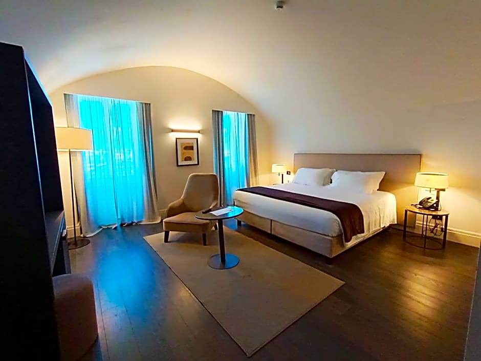 The suite with sea view was enormous. Very large 4 poster bed, really comfortable and a small balcony with 2 chairs and a table. Lots of space, a large sofa and plenty of room in the bathroom. The air con was great too especially at 86 degrees. All the staff were lovely and very helpful. The food in the restaurant was very good as was the service. Breakfast was varied but you ordered it at the table, including pastries and cereal. It was very good and a great variety. You can either pay €20 per night for the valet parking or you can park on the street free of charge. There is plenty of street parking available. Lots of great restaurants around and behind the hotel in the little lanes, so you will always find somewhere new to eat. A very relaxed place and we really enjoyed our stay here. You do really need a car to get out and about, which we had.