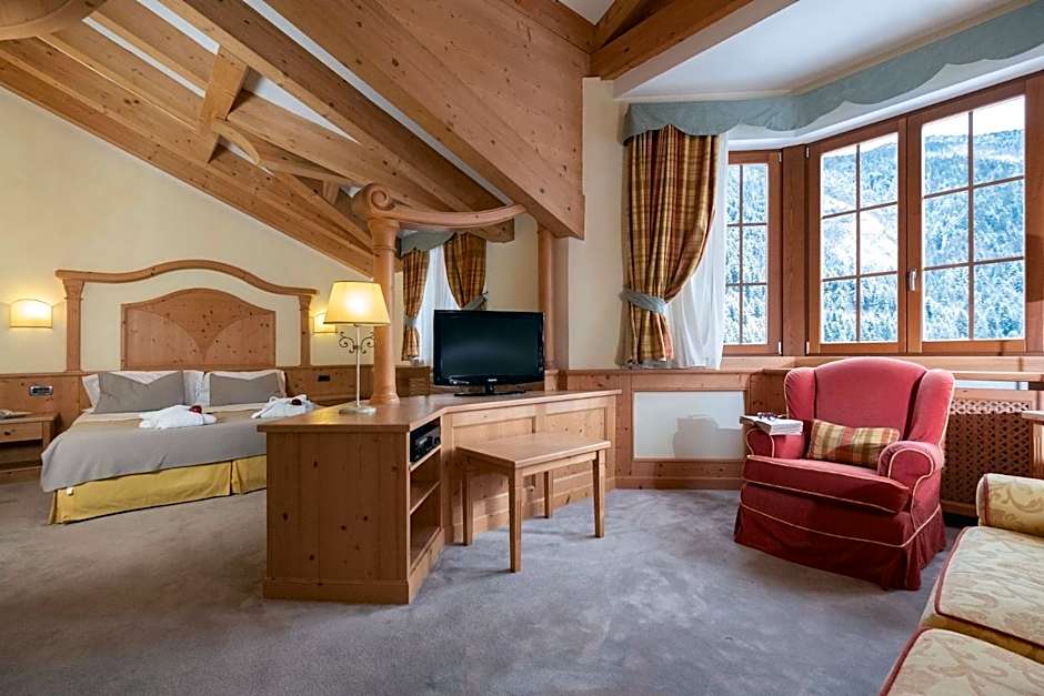 Features a balcony overlooking Lake Molveno. This elegant room comes with wood furnishings, a mini-bar and spacious bathroom with shower.
