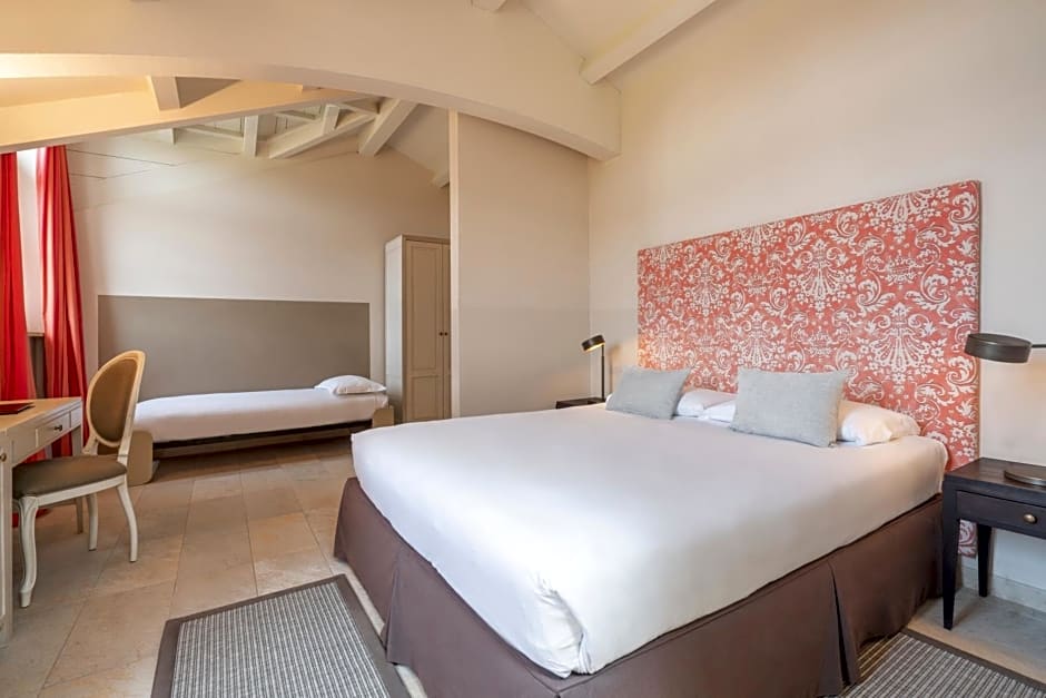 The Spinerola Hotel in Cascina offers a variety of rooms including Superior Double Rooms with Spa Bath and Balcony, Deluxe Rooms, Twin Rooms, Quadruple Rooms, and Junior Suites. All rooms are non-smoking and can accommodate 2 to 4 adults. Bed sizes range from King size to Twin beds, with room sizes varying from 237 sqft to 624 sqft.