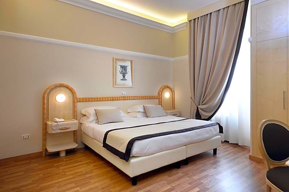 The Grand Hotel Vittoria offers a variety of rooms including Standard Rooms, Deluxe Rooms, and Suites. Occupancy varies depending on the room type, with some accommodating up to four guests. Smoking is not allowed in any of the rooms. Bed sizes range from double to king-size, and room sizes also vary.