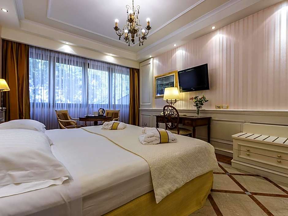 This is a spacious, generously proportioned hotel with impressive marble lined public areas. It is a thermal spa hotel and although we were offered robes, slippers and caps for a fee, this was not a hard sell and the spa facilities, included in the cost, were superb. The room was large, well lit with a bath and large shower. We loved staying here but it might be useful to know that there are very few villages or towns nearby to find alternative eating places. The food in the hotel was well priced and tasty but if you like a wee bar of chocolate with your Italian temperature cappuccino, then think ahead. We also booked very relaxing massages at reasonable prices. All in all, somewhere I would go back to and recommend to friends looking for a rural retreat with great views.