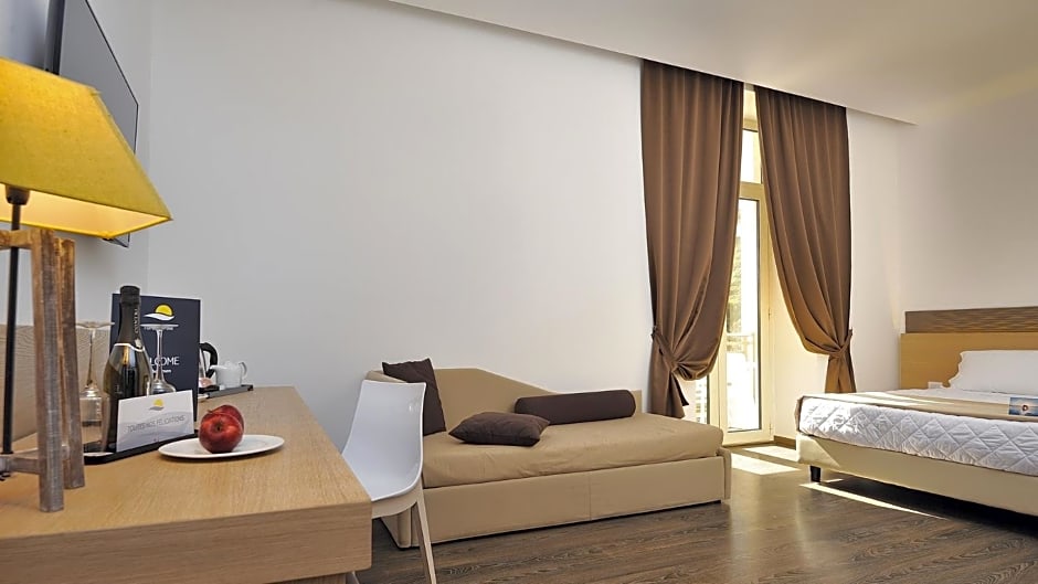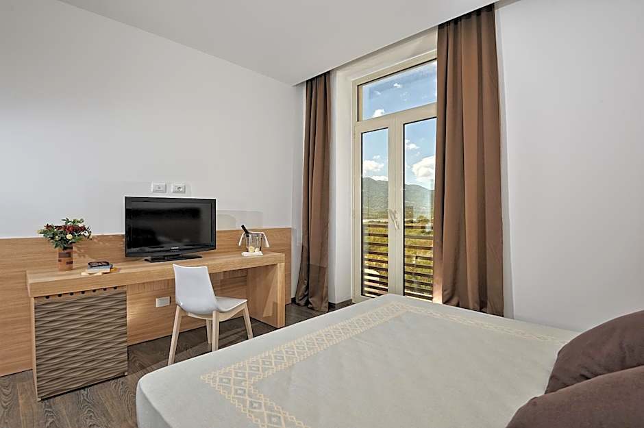 The hotel and the room was perfect. The pool was great, there was a private beach just a few steps away from the main building. Lots of sunbeds. The view from the sea view rooms was perfect. There was also a small gym, not a lot of equipment but decent enough for a hotel gym. There was also a big parking lot just outside the hotel. Perfect place for a couples summer vacation!