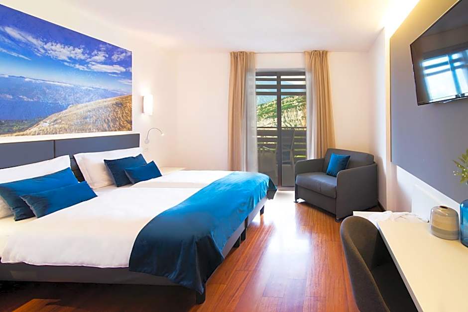 The view from the hotel is very nice! Especially from the breakfast area and the pool. Our room also included access to a big balcony with lake view. The staff was very friendly and always ready to help. The breakfast was also nice and included a variety of options. Overall the room includes everything necessary for your stay and is clean. Same for the pool, restaurant and other areas. Shops and center of Torbole are around 10mins by car.