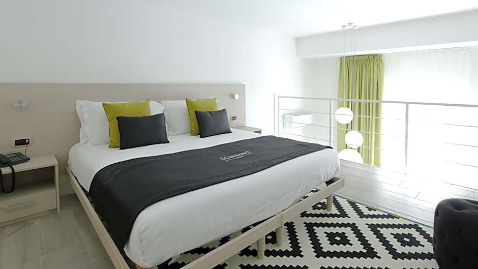 At Ecumano Space hotel, guests can choose from Standard Double or Twin Rooms, Rooms with Terrace, Maisonettes, and Superior Family Rooms. These accommodations do not allow smoking. Bed options include Queen size beds and Sofa beds, and room sizes range from 269 sqft to 753 sqft. Occupancy accommodates 2 to 4 adults and 1 child.