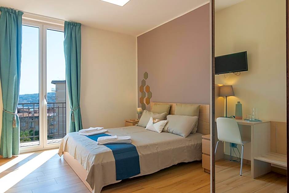 The Deluxe Sea View room at Santa Caterina B&B offers a picturesque setting for your vacation. Wake up to the sight of the sparkling sea and feel the gentle breeze from your private balcony. Ideal for 2 adults and 1 child, this room provides a comfortable space to relax and unwind after a day of exploring the city.