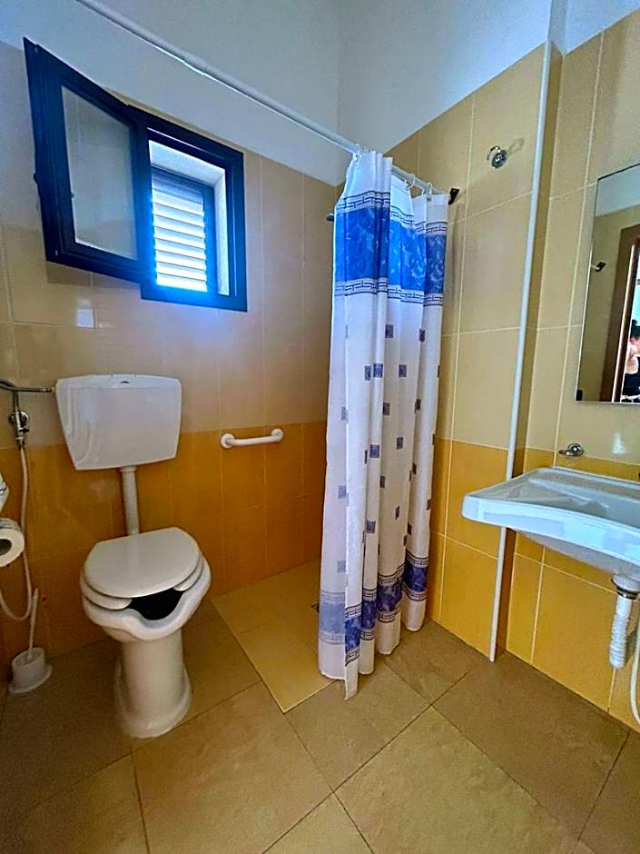 Nice hotel, good location right on the beach. Everything was closed as out of season but I wasn't by this. Room was clean and spacious. There was a terrace to sit out with a side view of the sea. Bathroom was very spacious and excellent shower (powerful and hot). WIFI was good quality as was breakfast (although small variety) Large secure parking. Would recommend for a stay in this area