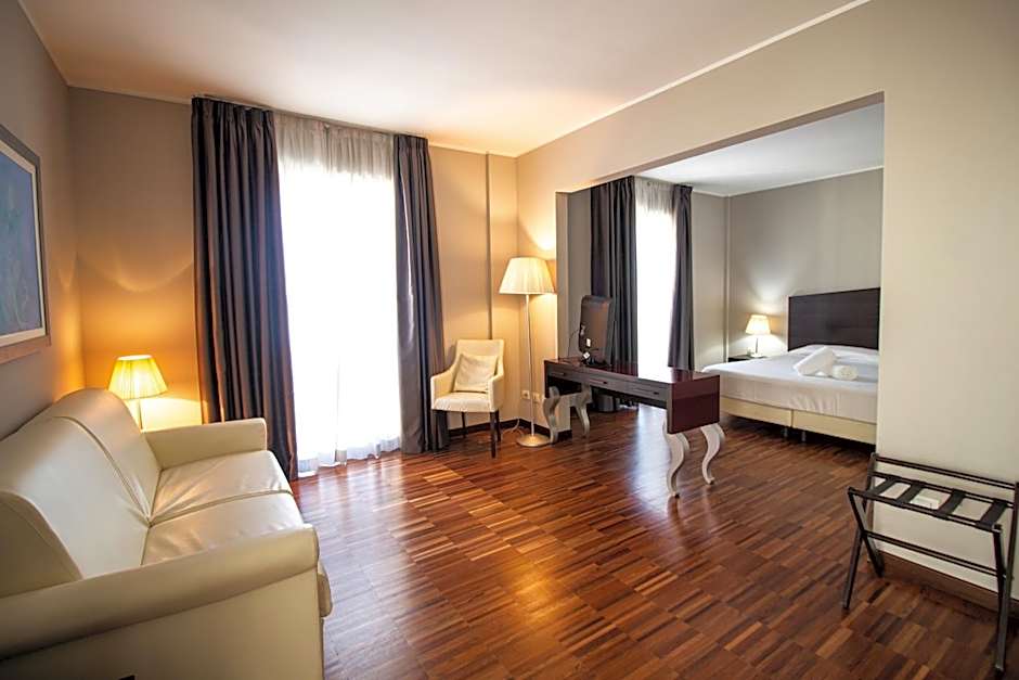 The Hotel Cavour offers a variety of room types including Executive Double or Twin rooms, Junior Suites, and Junior Suites with Terrace. The Executive Double or Twin rooms have a room size of 205 sqft and can accommodate 2 adults with a choice of either a Queen size bed or 2 Twin beds. The Junior Suites and Junior Suites with Terrace have a room size of 377 sqft and can accommodate 3 adults with a Queen size bed and a sofa bed. All of these rooms are non-smoking.