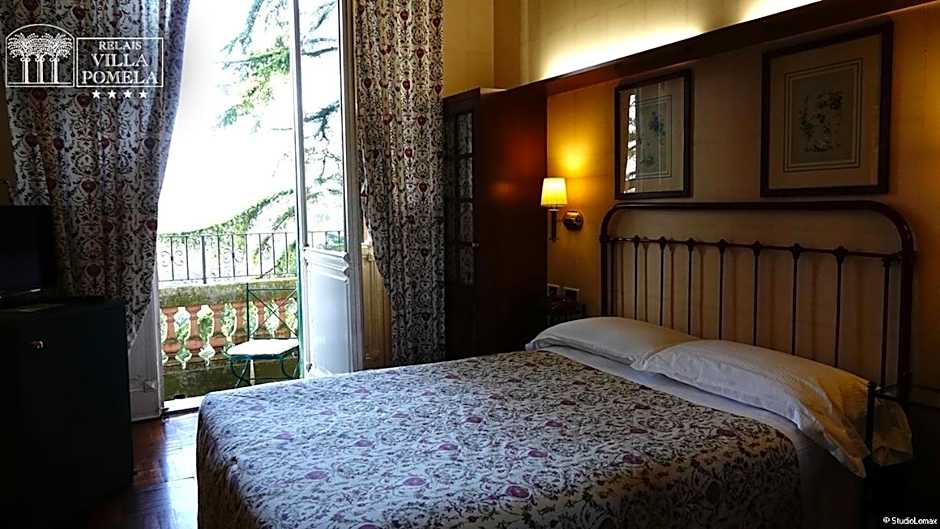 Rooms at Relais Villa Pomela include Double superior deluxe, Family Room, Double Superior Room, Double Classic Room, Standard Room, and a Suite. Occupancies range from 2 adults in the Standard Room to 4 adults and 2 children in the Suite. Smoking is not allowed in any room. Bed sizes vary from Double to King and include additional sofa beds and twin beds. Room sizes range from 226 sqft to 484 sqft.