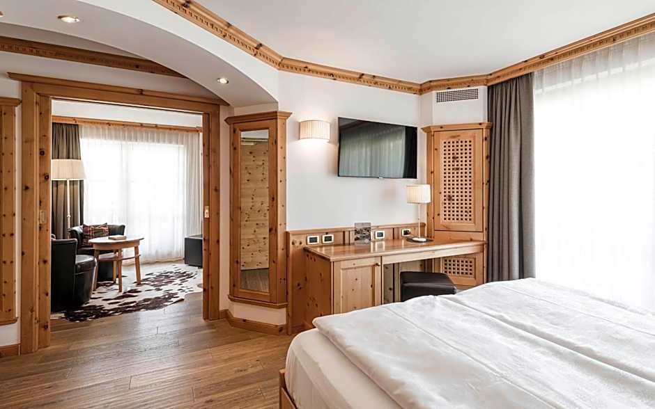 We loved this hotel and its location in Ortisei. We could easily walk to everything including the Secede and Seiser Ali lifts. Our balcony had a beautiful view of the mountains and although compact, the room was very efficiently laid out. The staff was wonderful, the food was terrific and the garden, pool and spa fantastic. Our half-board included buffet breakfast, snacks at 16:00 and dinner with multiple selections each evening.