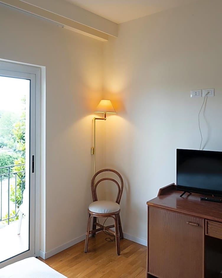 This air-conditioned double room includes a flat-screen TV with cable channels, a private bathroom as well as a balcony with garden views.