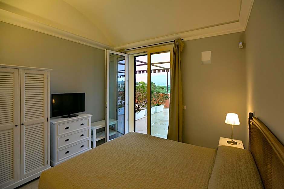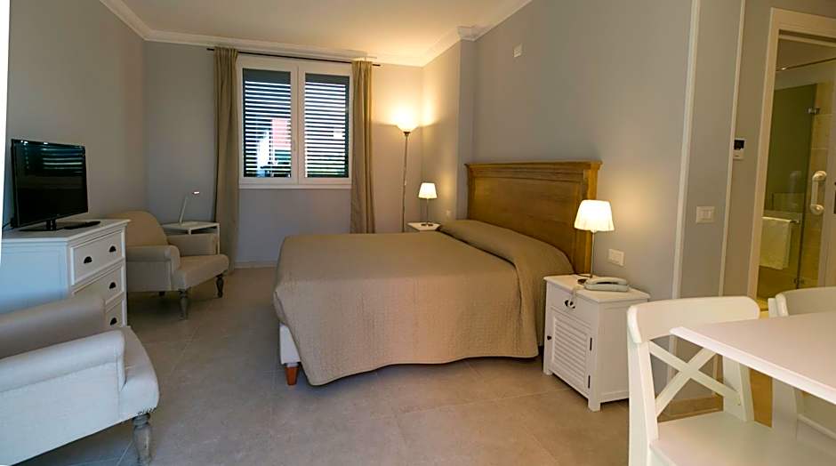 Offering a furnished terrace with views of the shared garden and olive groves, this one-bedroom apartment features a living area with kitchenette. Includes air conditioning.
