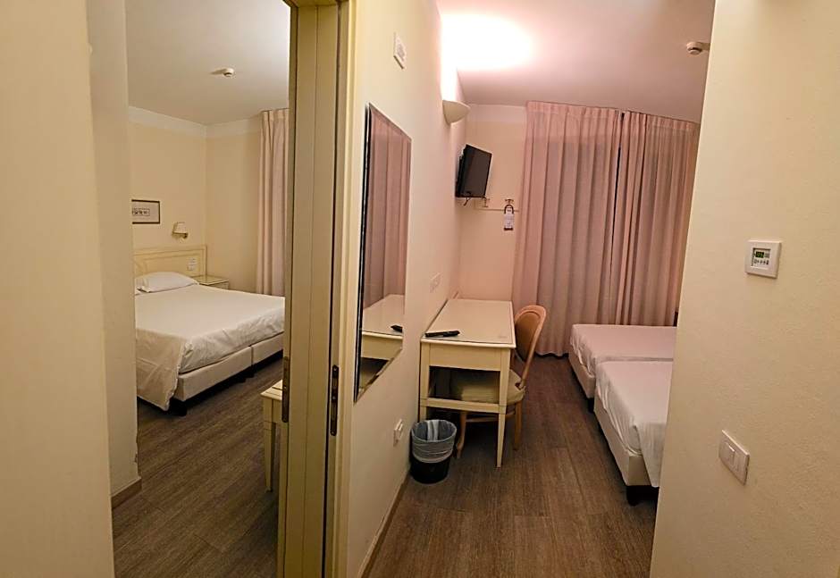 The Grand Hotel Bonanno offers a variety of room types including Family Rooms, Deluxe Double Rooms, Standard Double or Twin Rooms, and Comfort Single Rooms. Family Rooms accommodate 2 adults and 2 children with 3 Queen size beds and 2 Twin beds. Deluxe Double Rooms accommodate 2 adults and 1 child with 1 King size bed. Standard Double or Twin Rooms accommodate 2 adults and 1 child with 2 Queen size beds and 2 Twin beds. Comfort Single Rooms are for solo travelers with 1 Twin bed. Smoking is not allowed in any of the rooms.