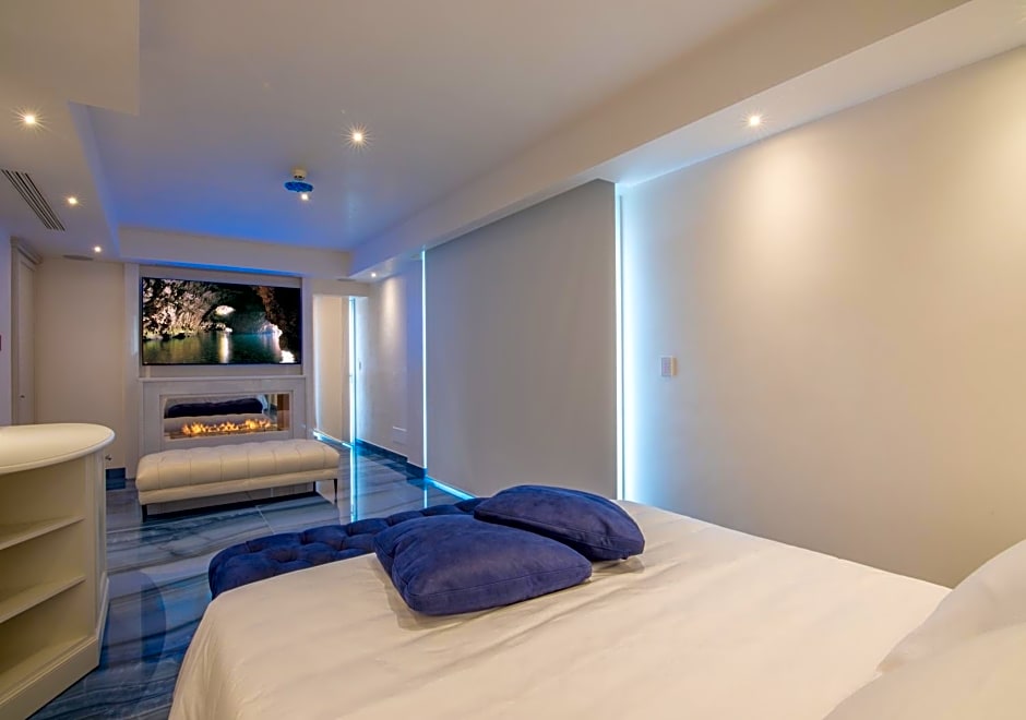 This suite offers a fireplace. Providing free toiletries and bathrobes, this suite includes a private bathroom with a walk-in shower, a bidet and a hairdryer. The air-conditioned suite provides a flat-screen TV with cable channels, soundproof walls, a mini-bar, a seating area as well as sea views. The unit offers 1 bed.