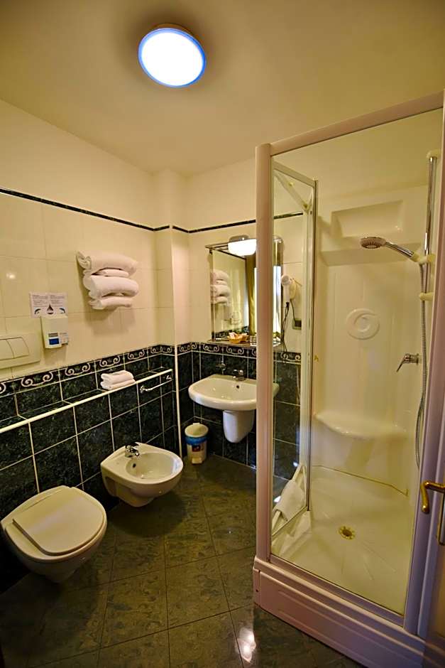 Immerse yourself in the luxurious atmosphere of Hotel Al Castello, where you can enjoy delicious meals at the on-site restaurant or unwind with a cocktail at the bar. The spacious and soundproof rooms ensure that you have a peaceful night's sleep after a day of exploration. If you fancy some relaxation, treat yourself to the spa tub or take advantage of the kid-friendly buffet when traveling with family. And not to worry, with free WiFi and 24-hour front desk service, your stay will be as smooth as those sparkling Italian waters just around the corner.