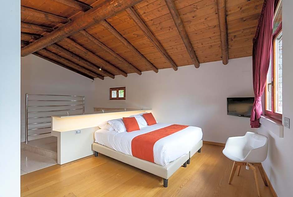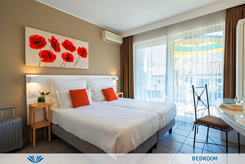 With living area, and a balcony or direct garden access with breathtaking views of Lake Lugano. The double bed is composed of two joined single beds.