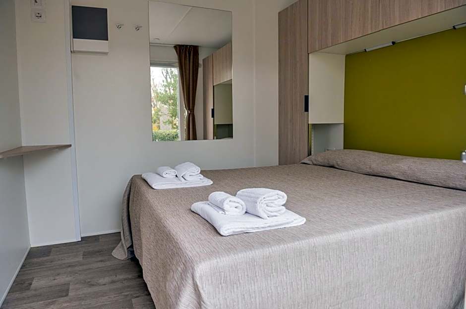 The accommodation environment is pleasant, safe, with a terrace, an equipped kitchen, few steps from the sea and the swimming pools, umbrella and two sunbeds are available on the beach, shop, little weaker wifi, restaurant, two children's playgrounds, allocated parking space, things are transported to the bungalow using carts. On offer is a rich animation program with a great team. They take care not only of children, but also of adults (exercises on the beach, football, volleyball, polo, spinning, etc.), program in the arena every evening (disco for the little ones, shows directed by animators or externs). The beach is clean, entrance to the sea is gradual, lifeguards take care of safety, employees even inflate large inflatable sunbeds, bikes are available for rent (bike paths to the nearby Comacchio lagoon), paddleboards, pedal boats.
