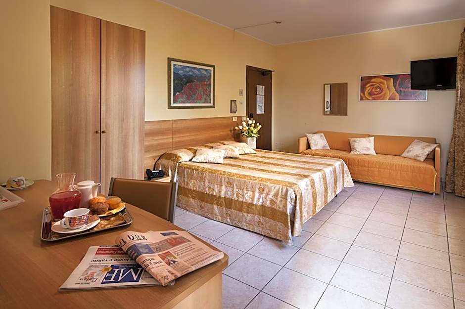 A very pleasant and convenient hotel for a stop-over en route to the south: easily accessible from the autostrada, spacious and safe parking, a nice outdoor restaurant for a relaxing evening, friendly staff, surprisingly quiet despite the proximity to busy roads, slightly old-fashioned but comfortable room with a large bathroom, tasty Italian-style breakfast with homemade pastries