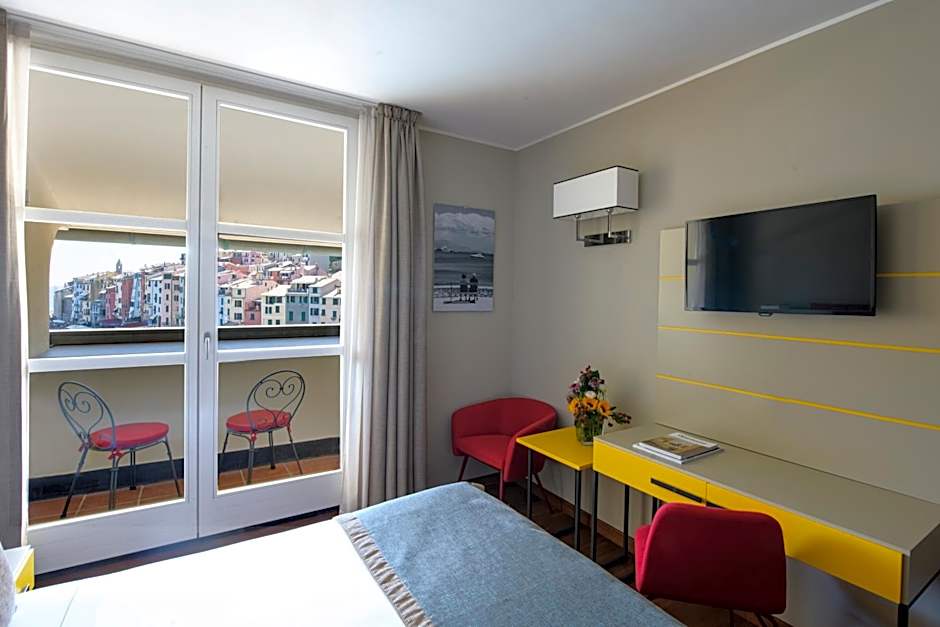 Located throughout our historic building, Deluxe rooms are bright and spacious, featuring large windows overlooking the Palmaria Island or the castle and surrounding hills of Portovenere. Every Deluxe room has unique architectural elements, and some include a spacious terrace or balcony. Each Deluxe room is complete with a king bed or two euro-single beds, a small sitting area and a full marble bathroom.
