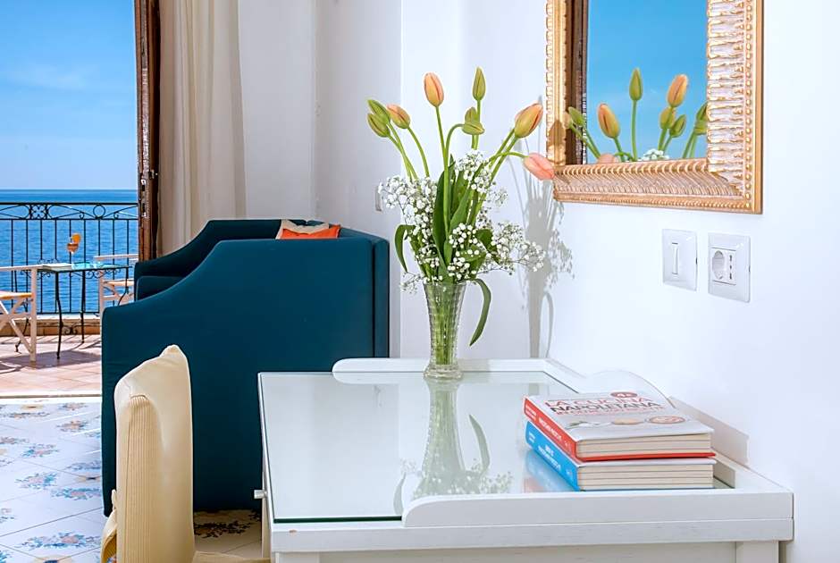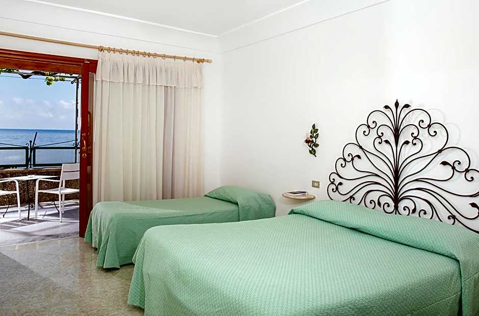The Big plus for this hotel was that it is right on the beach. All rooms open to the beach and Sea. The open air restaurant and vine/flower covered patio areas are also open to the sea view on the upper level and a lunch type quick service restaurant is below. The staff from front desk to service personal to beach chair guys and porters are all excellent. English is generally understood but please remember it is their second language. Room was spacious with comfortable beds and pillows. in an odd design the shower is not in the bathroom but part of the bedroom area with shower door open to the bed. Do note access to hotel is only available by walking down 400 plus steps (no exaggeration) the same steps you must go up although you can use and elevator of a neighboring hotel to cut out about 150 steps if it's working. You can arrange with the hotel to have porters bring your bags up and down. We drove in from Rome and used a parking garage the hotel arranged. A pretty good buffet style breakfast was included with our stay that scrambled eggs, sausages, breakfast meats, fruits, and a choice of about 15 different pastries some that changed each day. We did eat a dinner at the Hotel was was not disappointed with pricing reasonable. You can walk from the Hotel to the main Beach and lower area of the town for shopping by way of a sloping path, both up and down, with about 20 stairs at the end in about 15 minutes. Anything other than along the main beach you need to climb an uncountable number of steps in every direction. Anyone with mobility issues will have extreme difficulties.