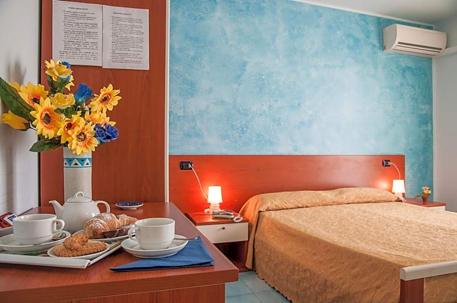 Address: Via C. Colombo 166. Featured amenities include Wifi (free), Air conditioning (free), Pet Friendly (extra charges), Beach, Bar, Terrace, Non-smoking rooms, Garden.