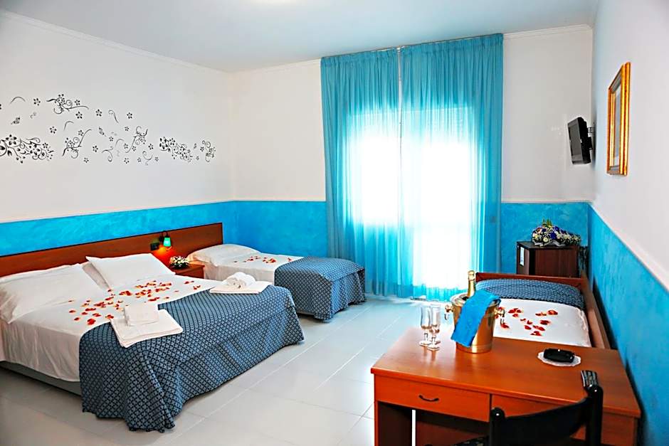 The Hotel Blu Eden provides a range of amenities to ensure a comfortable stay for guests. Enjoy a complimentary breakfast to start your day off right and take advantage of the free outdoor swimming pool, private parking, and WiFi. For those looking for some fun in the sun, the hotel boasts a private beach area, beach umbrellas, and beach chairs/loungers. Feeling adventurous? Water sports facilities are available onsite for an additional charge.