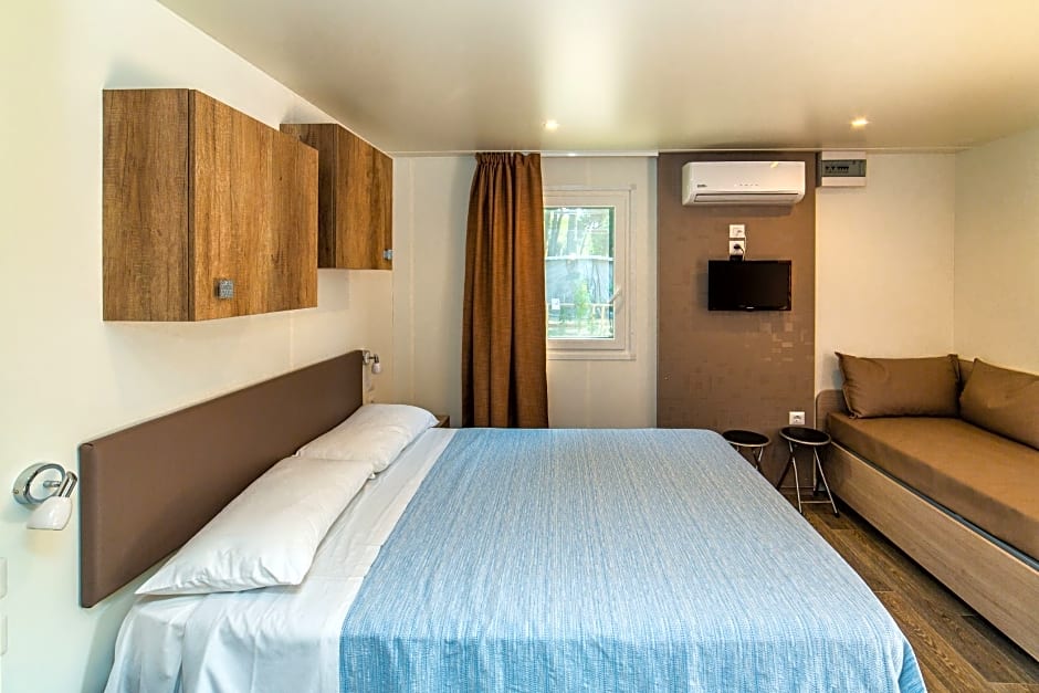 Camp absolutely worth the money spent here. We occupied the bungalow of the "Superior" category and we were kindly surprised with the equipment. There were two bedrooms and two bathrooms. That's highly appreciated because of no need to share one bathroom with our kids :)) There was a dishwasher and the air conditioning in the kitchen and that was just great. Oh, and bring your own favorite knife! Everything inside was perfectly clean and working. Definitely recommended!