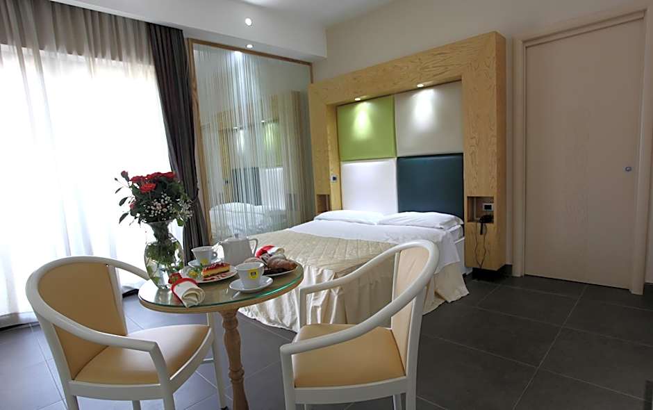 Hotel Briganti offers a variety of room types including Deluxe Suites, Triple Rooms, and Junior Suites. None of these rooms allow smoking. The Deluxe Suite has a room size of 420 sqft and accommodates 2 adults with 1 King size bed. The Triple Room has a room size of 431 sqft and accommodates 3 adults with 4 Twin beds and 1 Queen size bed. The Junior Suite has a room size of 398 sqft and also accommodates 2 adults with 1 King size bed.