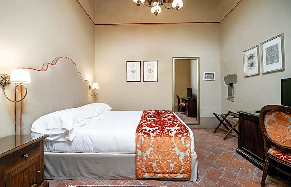This comfortable and elegantly furnished room offers free water in the mini-bar, a 32" LCD TV and air conditioning. The bathroom is complete with shower, hairdryer and toiletries. This room includes access to the swimming pool, the fitness center and SPA Vignavecchia. Some rooms come with wood-beamed ceilings