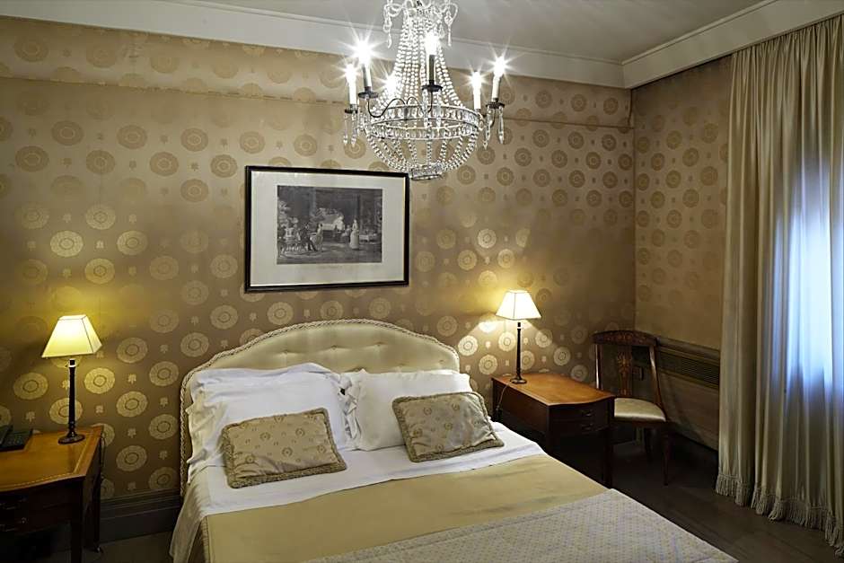 Elegant, air-conditioned room with wooden floors and a marble bathroom with hydromassage shower. Includes a mini-bar and a flat-screen TV with satellite channels. Wi-Fi is free. Please note that this room cannot accommodate extra beds.