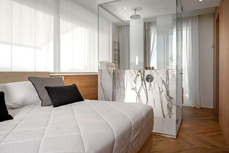 Located beachfront in Riccione at Via Gramsci 113, the property sits about 0,6mi from the city center, making strolls convenient. Practical comforts include free WiFi, air conditioning, and soundproof rooms, along with a 24-hour front desk, elevator access, and non-smoking rooms. Private parking is available for an extra charge.