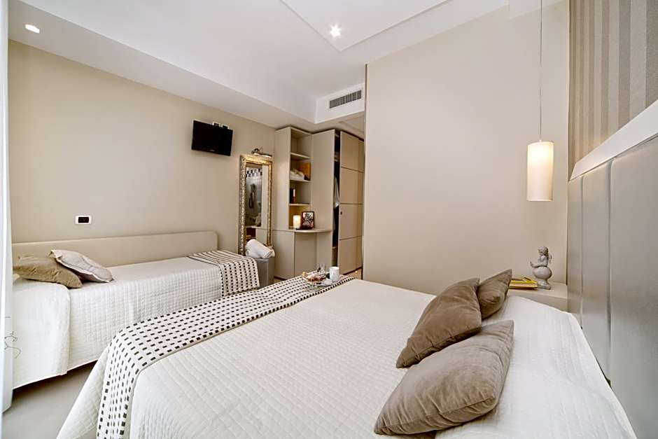 Hotel Darsena offers Double or Twin Rooms for 2 adults, Triple Rooms for 3 adults, and Quadruple Rooms for 4 adults. Smoking is not allowed in any of the rooms. The room sizes range from 129 to 161 sqft, with bed options including Queen size and Twin beds in various combinations.