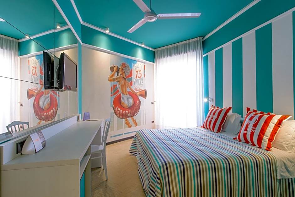 After a day of sun-soaked beach escapades or city sightseeing, retreat to the cozy comfort of your room at Admiral Art Hotel. Choose from a variety of room types tailored to your needs, from the intimate Small Double Room to the spacious Deluxe Room for single occupancy. Each room exudes a blend of elegance and relaxation, offering the perfect sanctuary to unwind and recharge for another day of adventures in Rimini. With amenities designed to enhance your stay, including complimentary Wi-Fi, air conditioning, and room service, every moment at Admiral Art Hotel promises a memorable and rejuvenating experience for guests seeking a touch of luxury during their Italian getaway.