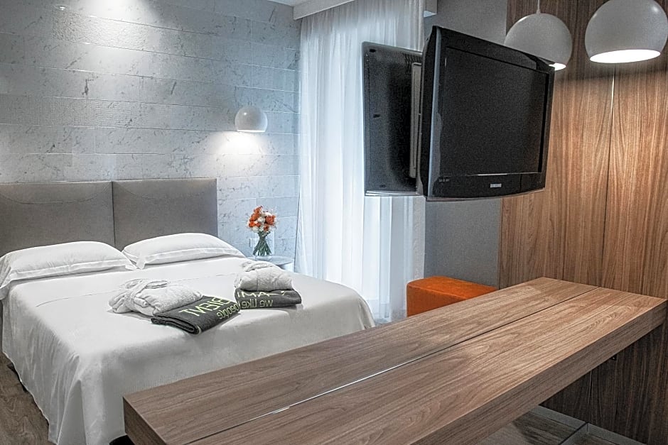 Features LCD TV, mini-bar and hairdryer. It is also known as the Perla Tech room.