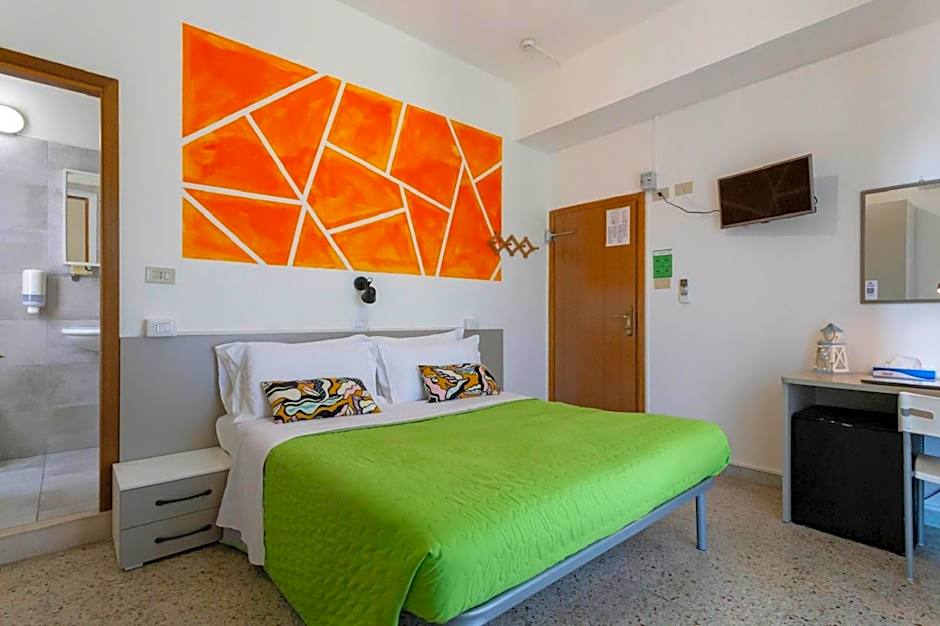 really nice young staff; rich sweet breakfast; excellent for trainspotting :) clean room, hotel pool, quick connection to the centre of Rimini