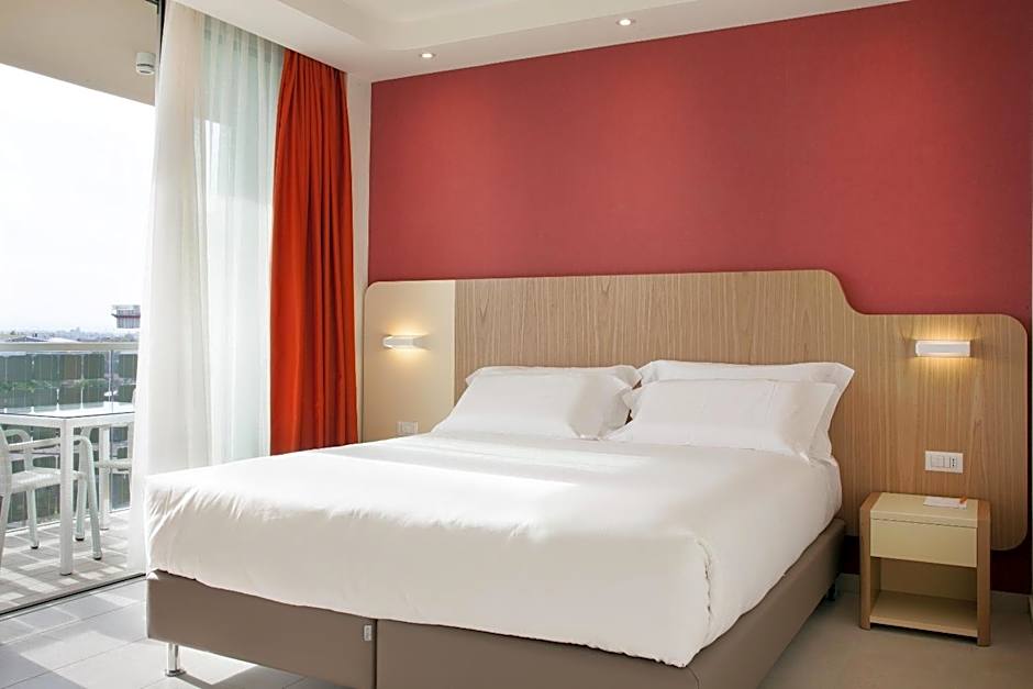 The hotel is extremely comfortable and cozy! The guys at the reception are simply beyond praise. Always friendly and positive, ready to help on any issue. They checked us in and checked us out in a couple of minutes. The room is equipped with a small refrigerator, safe, air conditioning and a furnished balcony. The room itself was clean and the daily cleaning made it even cleaner. Also the cleaning staff are very friendly. The shower cabin is spacious and comfortable. You can open the window in the bathroom. Breakfast is varied - eggs every day, some meat, lots of pastries, cheese, sausage, yoghurt, fruits and vegetables. Lots of cold and hot drinks. It's literally 10 minutes to the beach at a leisurely pace. There are hundreds of restaurants and a bus stop nearby. The central train station and bus to San Marino are a 15-minute walk away. The rooftop pool is clean and there are enough sun beds and umbrellas. The guy from the pool bar fought a seagull when he saw it trying to get things out of our bag! Special thanks to him I don’t remember when I received such high consideration. Perhaps only in hotels of the Hyatt level. We will definitely come back here again and again.