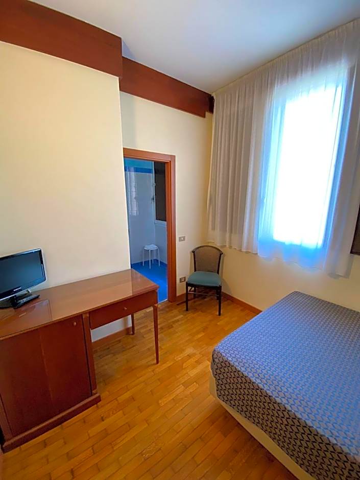 Rimini is a beach town so we didn't know to expect traveling there in December. Well, we weren't disappointed at all. The hotel is across the street from the beach and promenade and there are several shops and restaurants nearby. We had booked a triple room and were upgraded upon check-in. The room had one main bedroom and and area for a daybed. The bathroom was modern and everything was in working order. The big plus is that we were given a full size terrace that overlooked the beach area north of the hotel. The bedroom also had a balcony which was very nice. We used Rimini as a jumping off point to visit San Marino. However, we were pleasantly surprised with the city itself. The staff were excellent and accommodating. They wanted to make sure we really enjoyed our stay.