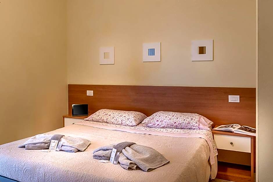Location, room space, air conditioner in every room. Wifi has a good coverage. Elevator facility. Bus stop is near to get Rimini. The price is reasonable. Absolutely outstanding and professional staff who care of your good staying.