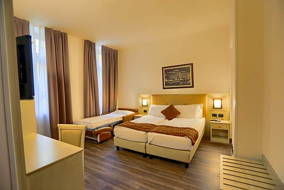 This air-conditioned triple room features tile/parquet floors and a mini-bar.