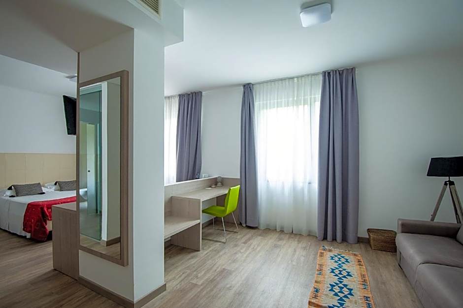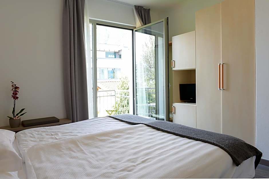 I recently stayed at this hotel with my family, which includes my husband and our toddler son. I was impressed by its excellent location. Situated close to the lake, it offers easy access to a charming cafeteria/restaurant nearby, which serves drinks and broadcasts football matches on TV. Additionally, a delightful gelato place is just a short walk away, and the mall is only a few minutes from the hotel. The hotel also boasts a lovely pool, perfect for relaxation. The staff at the reception, particularly Sylvia and Anna, were exceptionally helpful. They assisted us with all our inquiries about tours and local landmarks and were invaluable in arranging taxis, especially when we needed to find a clinic for my son after he got hurt. We also took a trip to Riva using public transport, which the reception staff organized on short notice. Their efficiency and willingness to help made our stay even more enjoyable. Overall, I highly recommend this hotel for its prime location, excellent amenities, and outstanding service, especially for families.