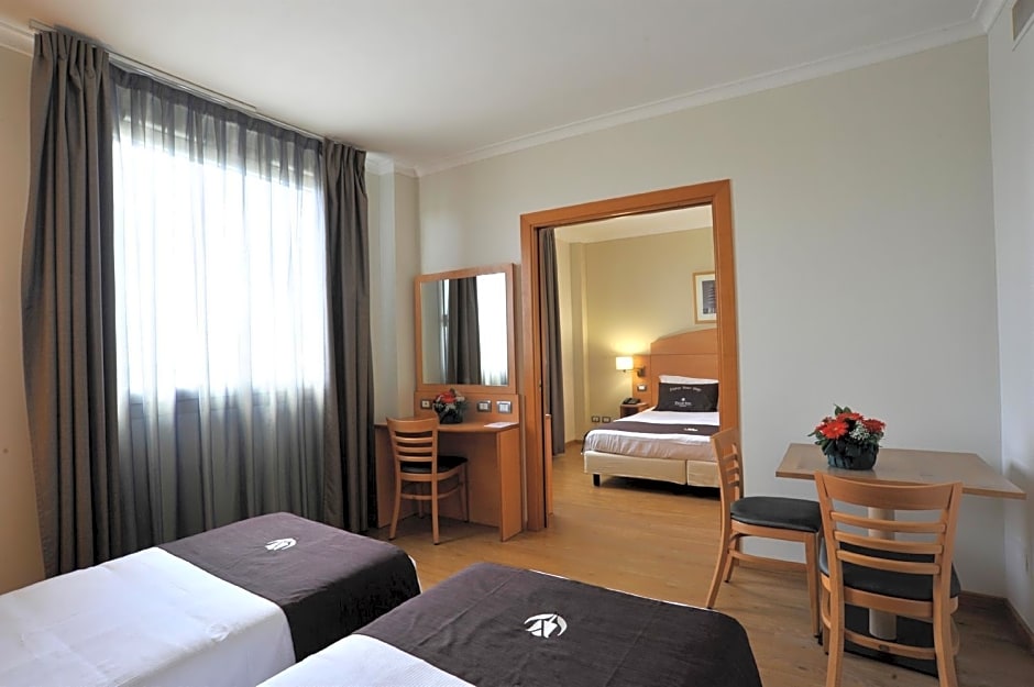 We loved tasty breakfast, with quite some choice. Room was large enough, the bathroom was big and nice, with a bide. There were a kettle and tea and coffee bags in the room. Staff speaks English and are very kind and helpful. There is a big parking space around the hotel. The location of the hotel is near the motorway (autostrada), it is easy to find.