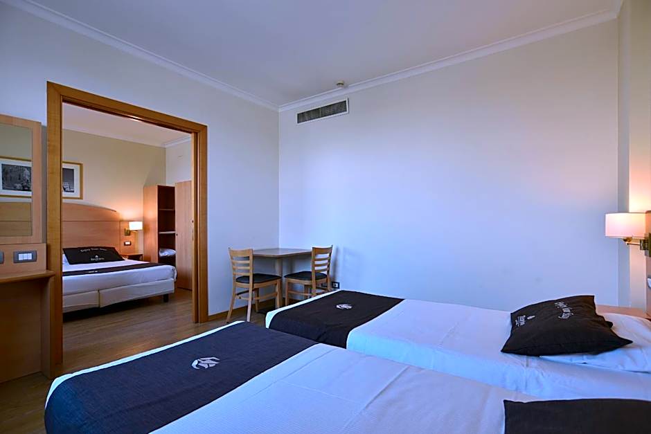 The hotel offers Double Rooms with 1 Queen size bed, Twin Rooms with 2 Twin beds, and Quadruple Rooms with either 4 Single beds or 2 Double beds. All rooms are non-smoking and have a size of either 183 sqft or 248 sqft. The rooms can accommodate either 2 adults and 1 child or 4 adults and 3 children.