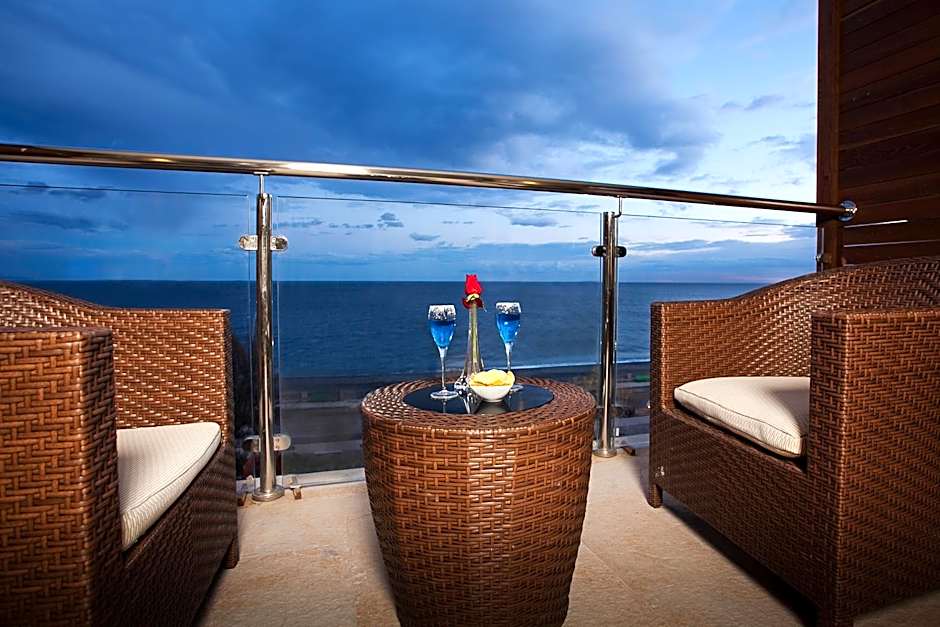 Main Palace Hotel offers various types of rooms including Prestige Double Room with Hot Tub and Sea View, Deluxe Double Room, Romantic Double Room with Balcony and Sea View, Superior Double or Twin Room with Balcony and Sea View, Standard Double or Twin Room with City View, and Double or Twin Room with Private Pool and Sea View. Rooms accommodate 2 to 4 adults, have bed sizes ranging from Twin to King, and generally do not allow smoking. Room sizes vary between 215 sqft to 323 sqft, providing guests with a comfortable stay.
