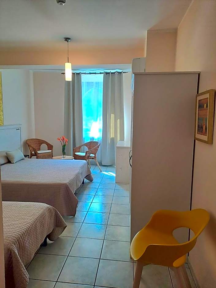 The quadruple room provides air conditioning, a tea and coffee maker, as well as a private bathroom featuring a shower and a hairdryer. The unit offers 3 beds.