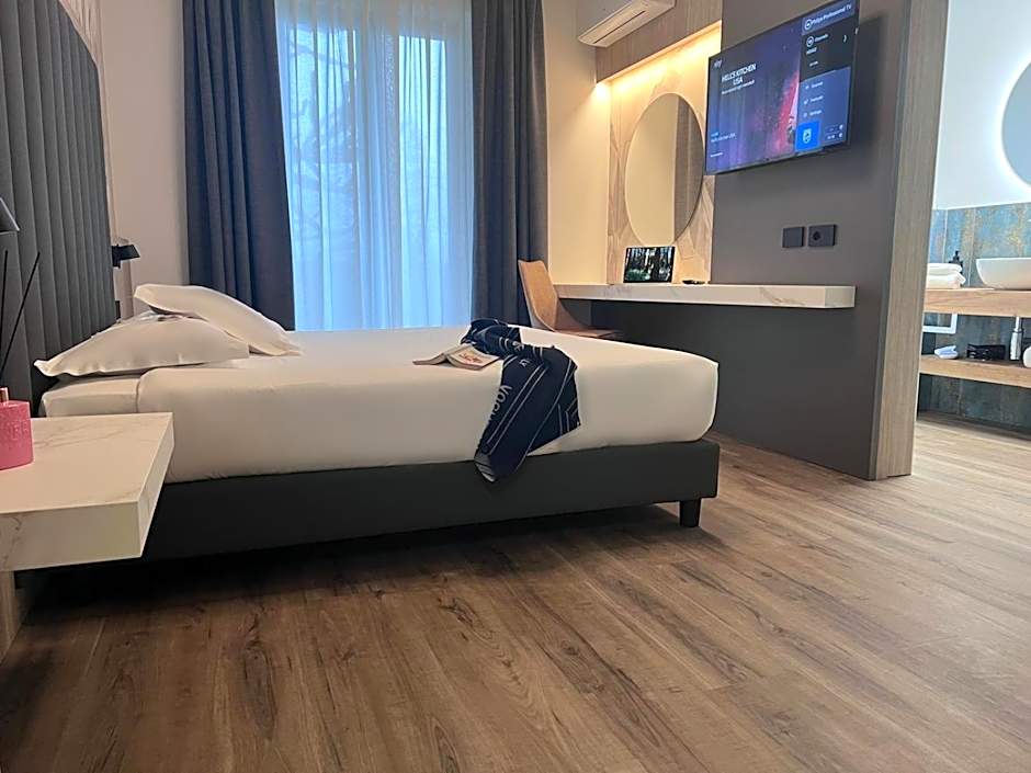 Hotel Gardenia offers a variety of rooms including King Rooms with Mountain View, Junior Suites with Mountain View, Deluxe Double Rooms, Business Double Rooms, Superior Triple Rooms, Double Rooms with Mountain View, and Double Rooms with French Beds. All rooms are non-smoking and can accommodate either 2 adults and 1 child or 3 adults and 1 child. The beds in the rooms range from Queen size beds to King size beds, with some rooms also offering Twin beds and Double beds. The sizes of the rooms range from 129 sqft to 248 sqft.